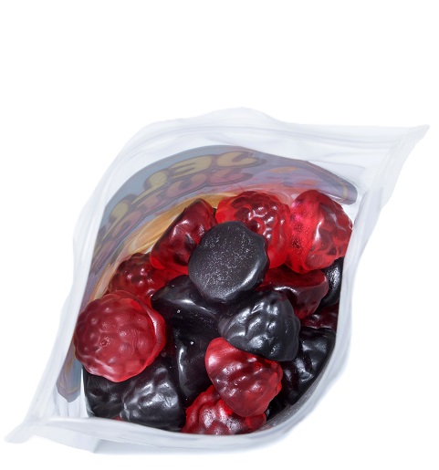 глюкозний сироп, цукор, желюючий агент — желатин, концентрат яблучного соку, підкислювач — лимонна кислота, ароматизатор (малина, ожина), регулятор кислотності — цитрат натрію, натуральний барвник (кармінової кислоти екстракт), барвник - чорний блискучий (E151), антизлежувач — карнаубський віск